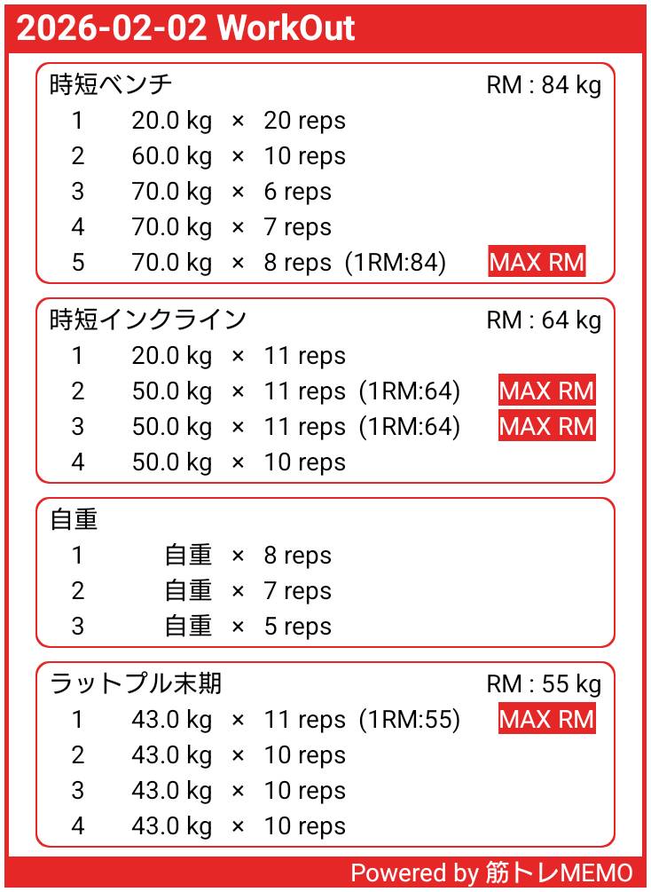 | … | 24無念Nameとしあき26/02/02(月)07:29:44No.1384368982そうだねx2ジムも行った昨日と連続になる日なのでパンプ狙い |