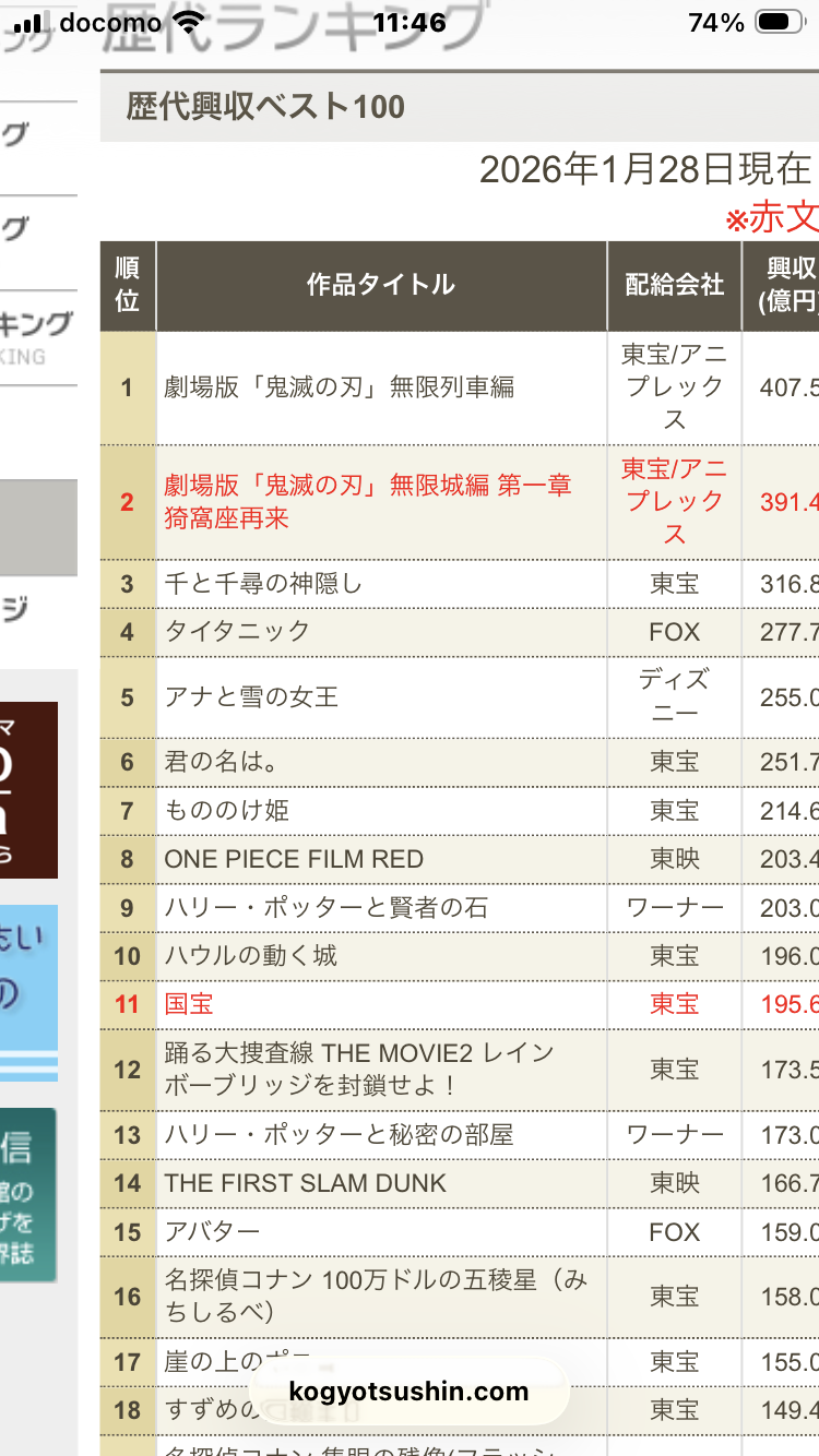 | … | 36無念Nameとしあき26/02/02(月)11:51:39No.1384394749+>国宝ヒットしてたじゃん?と思ったがその位置なのね |