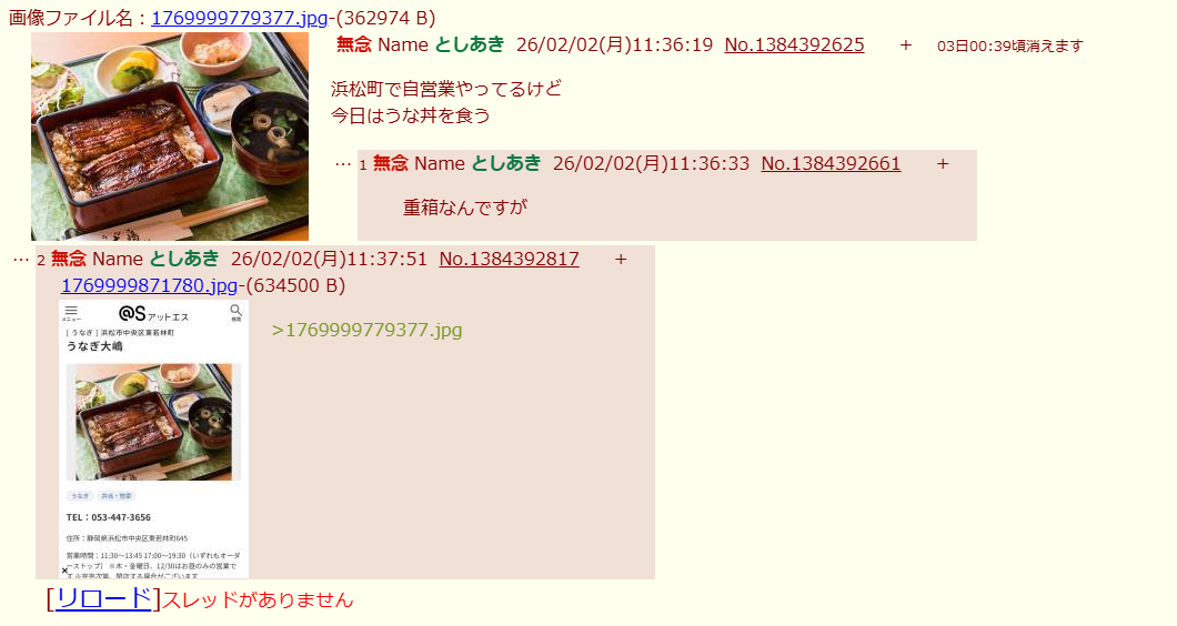| … | 73無念Nameとしあき26/02/02(月)12:31:13No.1384401752+https://img.2chan.net/b/res/1398131306.htm |