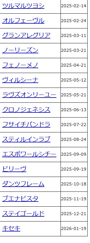 | … | 59無念Nameとしあき26/02/02(月)13:57:32No.1384416783+ぱかライブまであと20日か…長いな… |