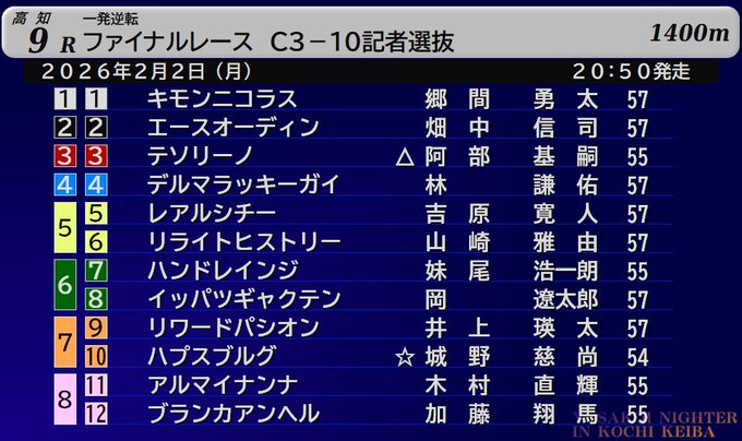 | … | 383無念Nameとしあき26/02/02(月)17:24:23No.1384448464そうだねx1>デットーリが引退日にG1勝って有終の美だそうだ |