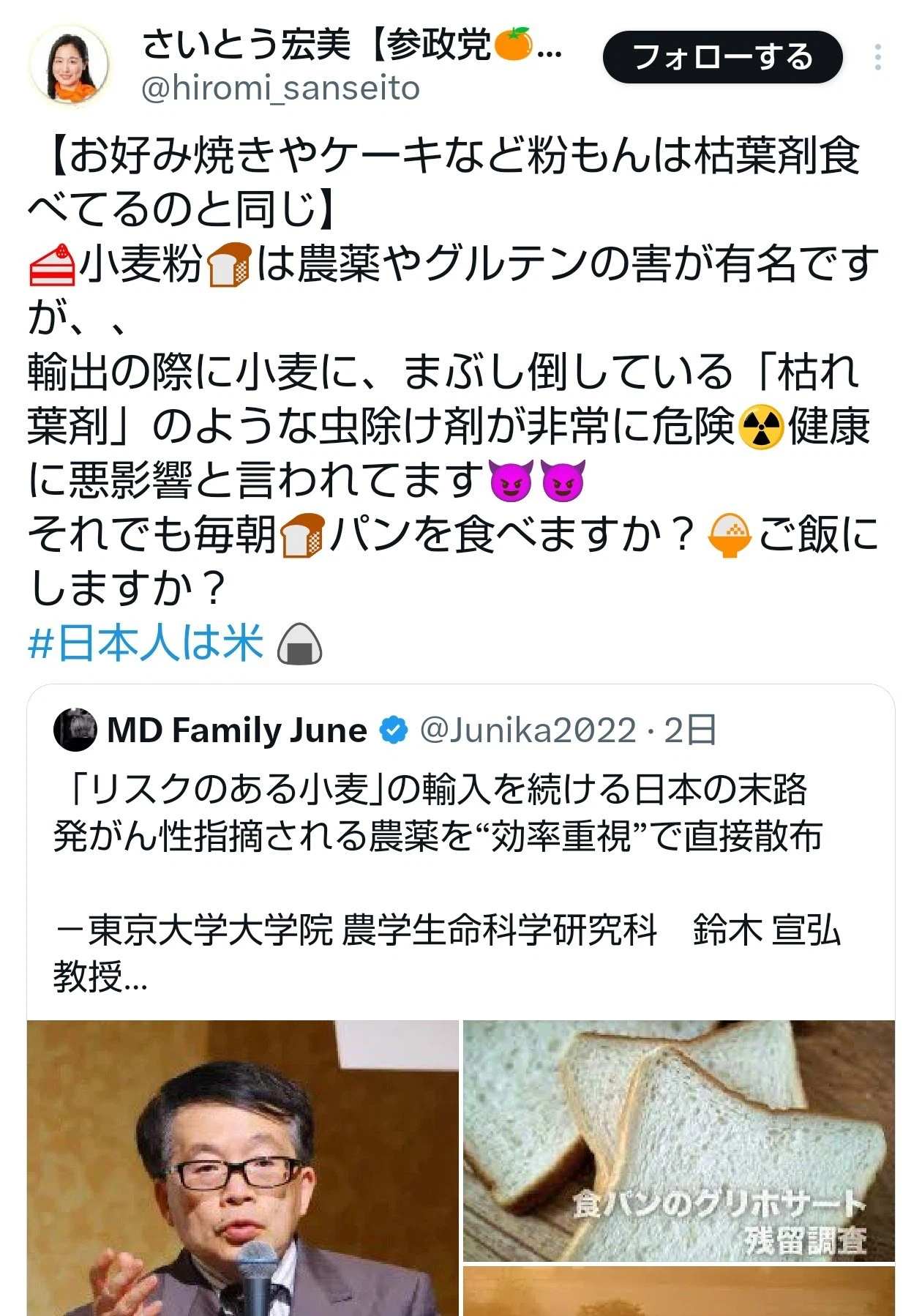 | … | 495無念Nameとしあき26/02/02(月)20:08:09No.1384485587+>参政党支持者って小麦も乳製品も植物油も甘い物も毒だから食べられないんだろ |