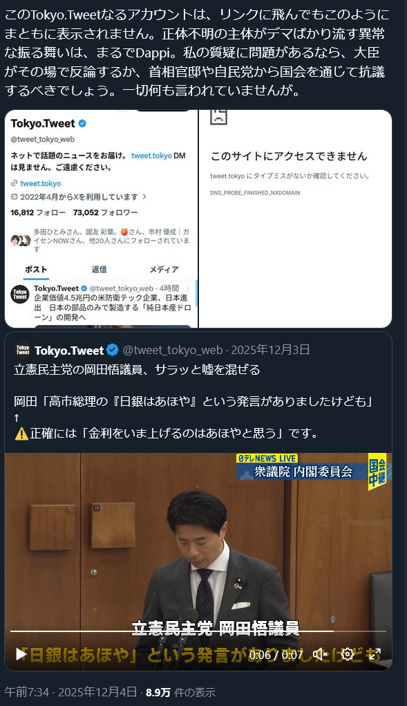 | … | 993無念Nameとしあき26/02/02(月)22:29:30No.1384525234そうだねx1自公やテレビ局がどうこうのコピペをまた貼り始めてるし他にネタないのか |