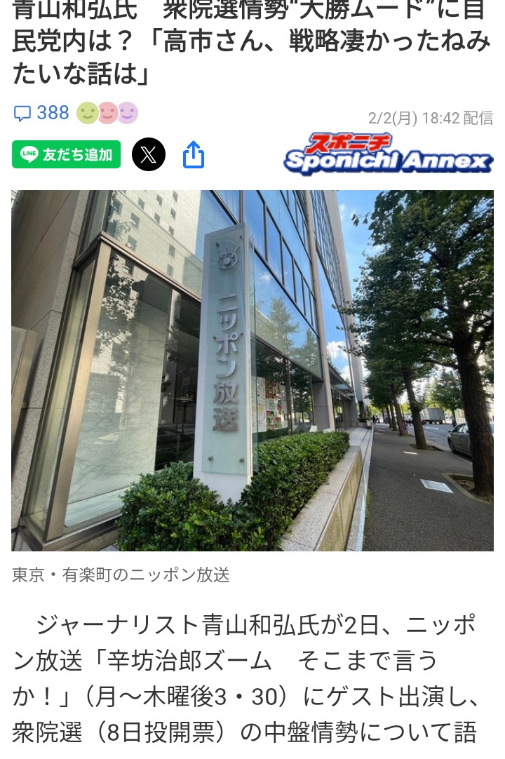 | … | 7無念Nameとしあき26/02/02(月)20:31:25No.1384492065そうだねx18>BS TBSすごい高市下げ自民下げのやり方してるな |