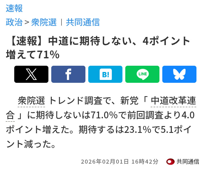 | … | 28無念Nameとしあき26/02/02(月)22:39:13No.1384527695+出口調査は中道でお願いします |