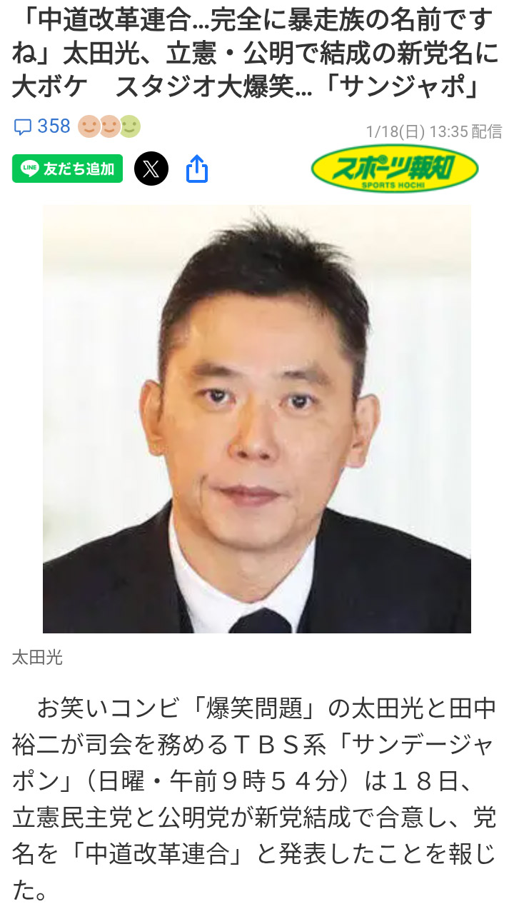 | … | 990無念Nameとしあき26/02/03(火)00:15:18No.1384549133+立憲と公明は確かにいうほど政策は離れてないんだが |