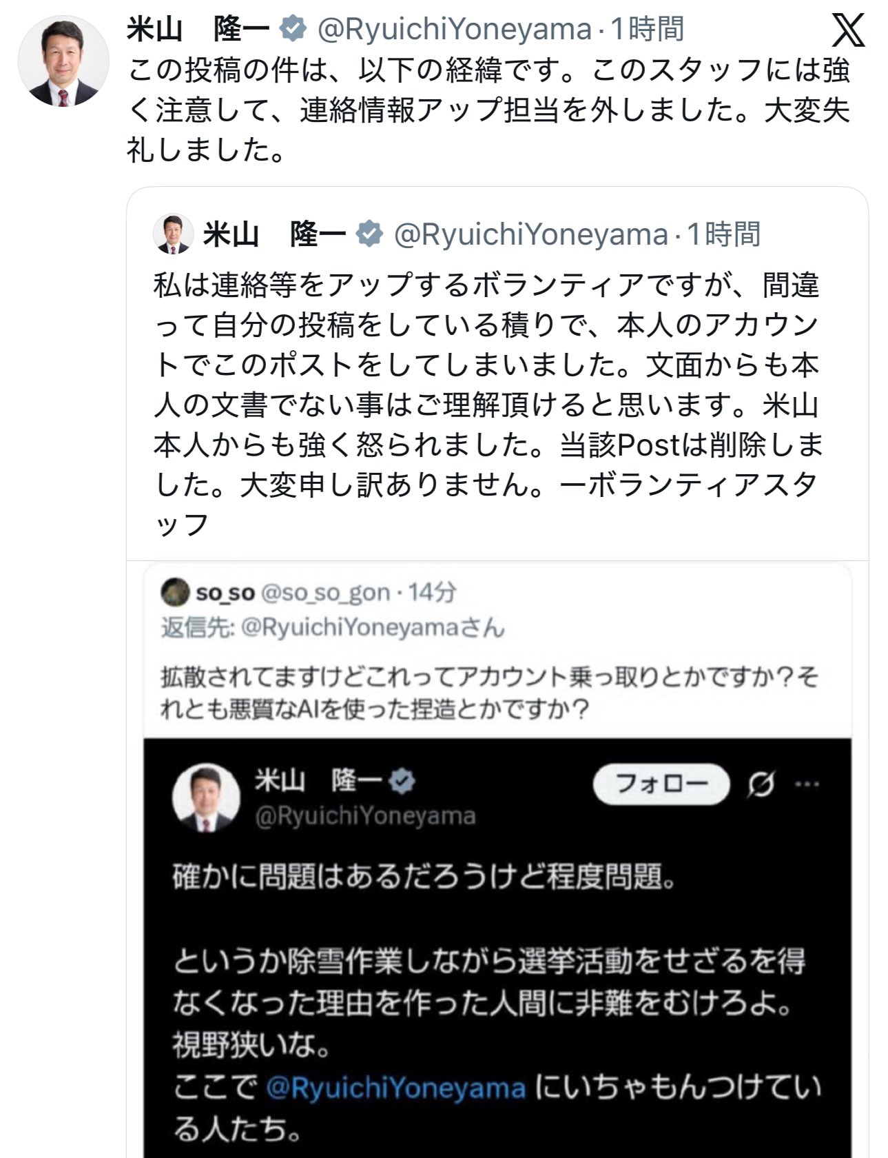 | … | 969無念Nameとしあき26/02/03(火)00:12:09No.1384548531そうだねx1>支持者からもここ数年原口さんは言ってることがおかしいから何とかしてよ…って言われてたみたいだしなあ |