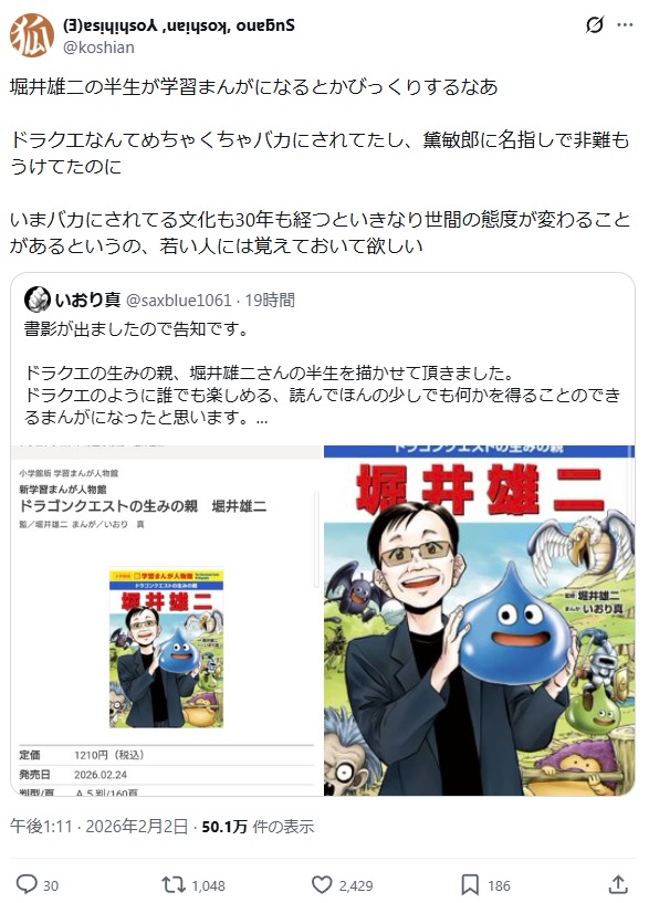 | … | 75無念Nameとしあき26/02/03(火)07:27:14No.1384573653+今でこそゲーム業界は大きくなったけど堀井雄二はこういう輩とも付き合わなきゃならなかったんだろうな |