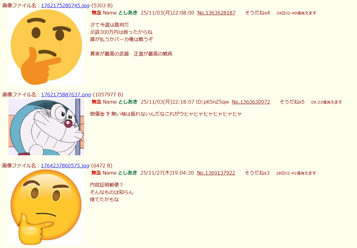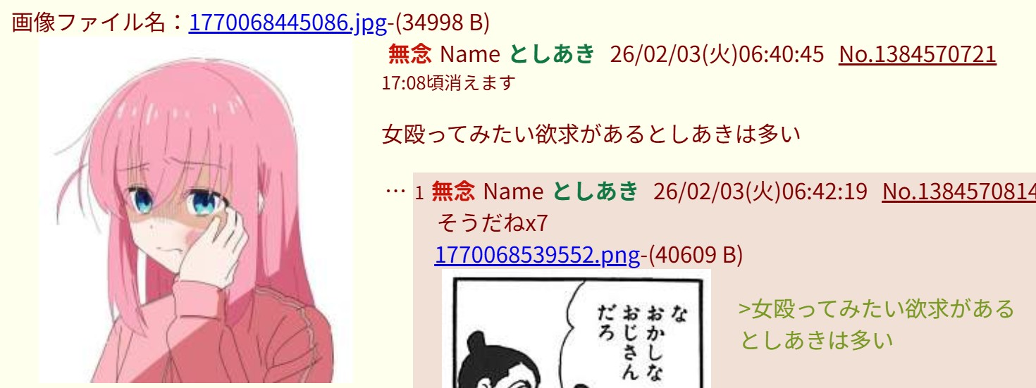 | … | 50無念Nameとしあき26/02/03(火)06:59:36No.1384571791+>男、ヤッチャイ逃げも隠れもせんぞ |