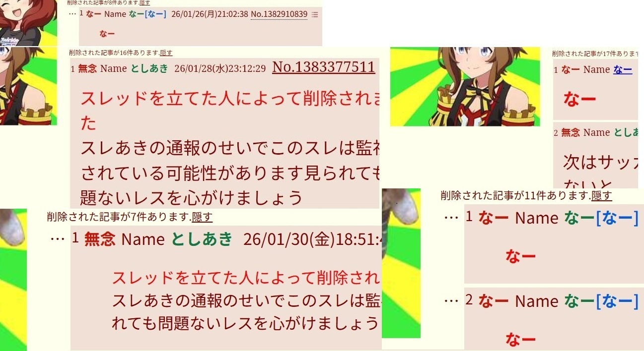 | … | 16無念Nameとしあき26/02/03(火)06:49:00No.1384571161そうだねx1>何このスレ |
