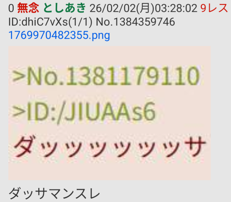 | … | 7無念Nameとしあき26/02/03(火)07:32:29No.1384574104+>DAS'SA-MEN |