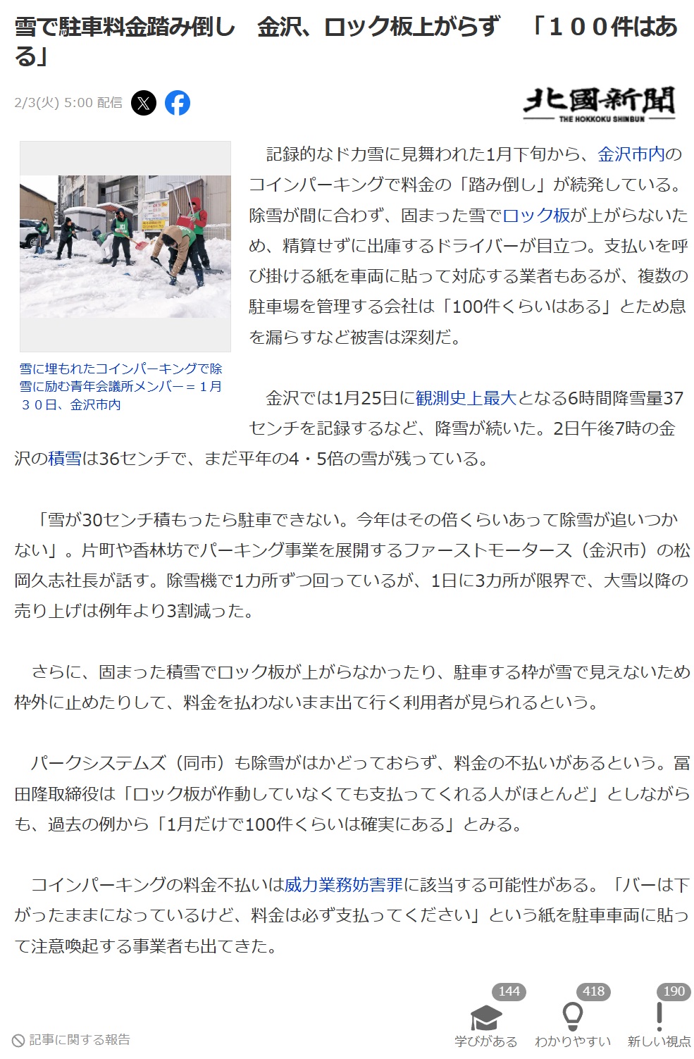 | … | 17無念Nameとしあき26/02/03(火)08:37:39No.1384580396そうだねx1大雪なんだから家と道路の除雪するのに精一杯で駐車場の除雪なんてやってられんだろう |