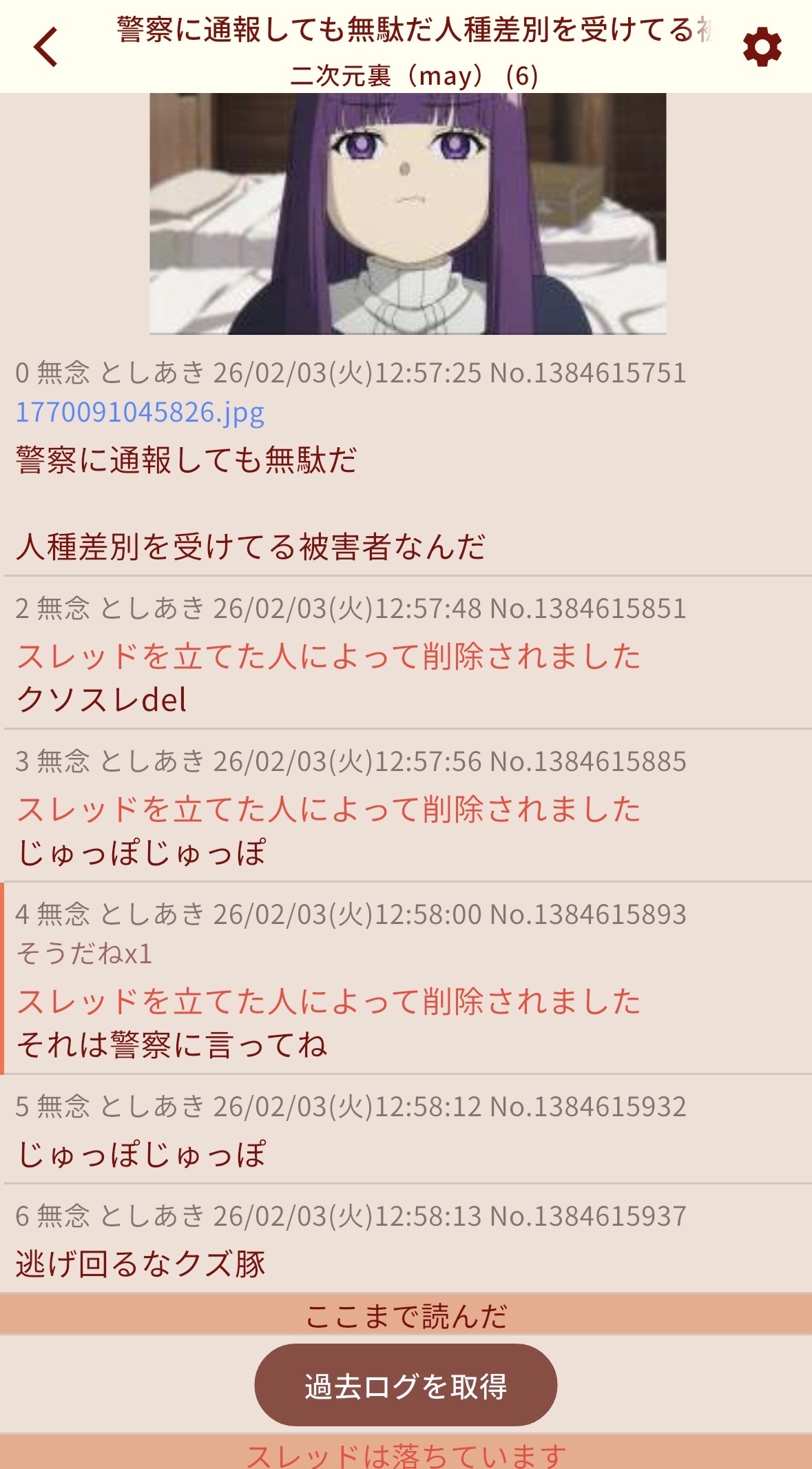 | … | 85無念Nameとしあき26/02/03(火)14:19:37No.1384629260+他のスレで知恵遅れの巣窟じょんと泣き始めたから |