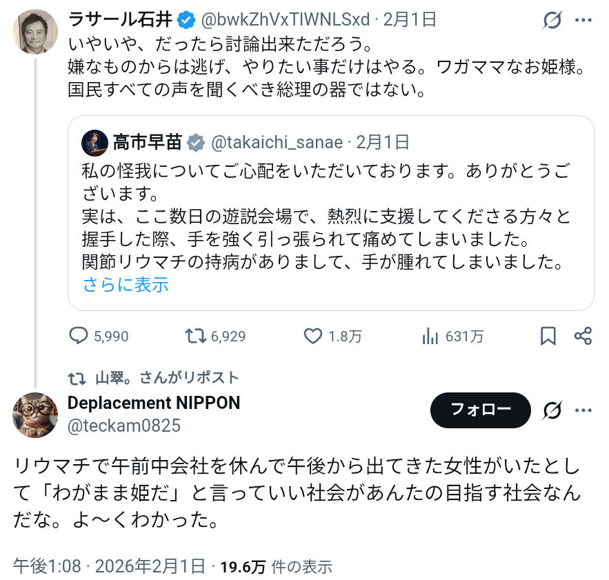 | … | 10無念Nameとしあき26/02/03(火)20:25:29No.1384700383+石破や岩屋と同じですよね |