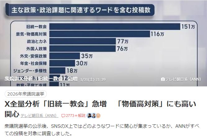 | … | 715無念Nameとしあき26/02/04(水)00:49:55No.1384769944+>高市も統一教会との繋がりが暴露されまくってるし本当に面白いことになりそう |
