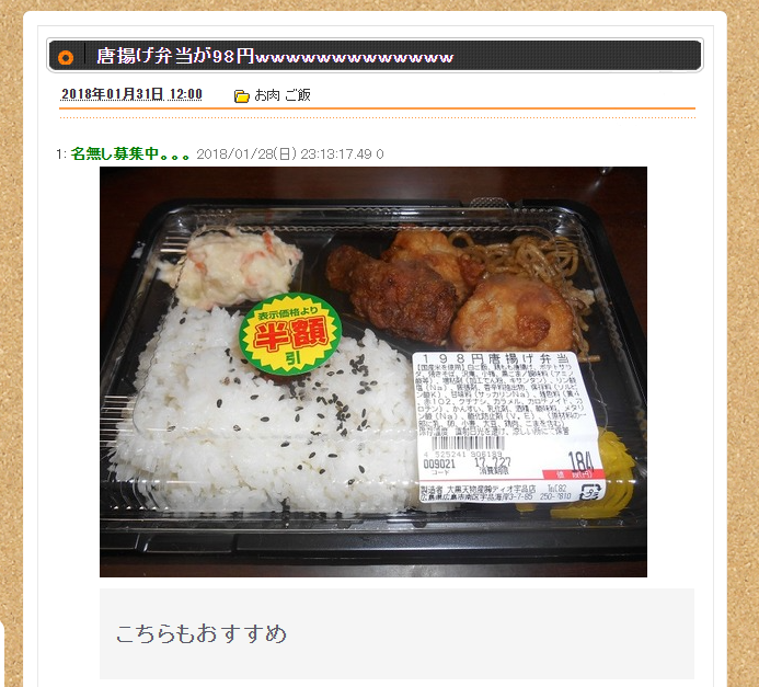 | … | 408無念Nameとしあき26/02/04(水)01:01:24No.1384771664+まあ半額以下の投げ売り弁当とかもよくあるんだけどね |