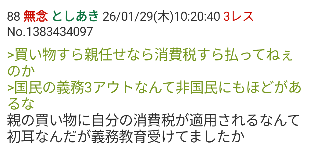 | … | 18無念Nameとしあき26/02/03(火)23:12:23No.1384749280そうだねx2糖質はやっぱ糖質だったな(呆れれれれ) |