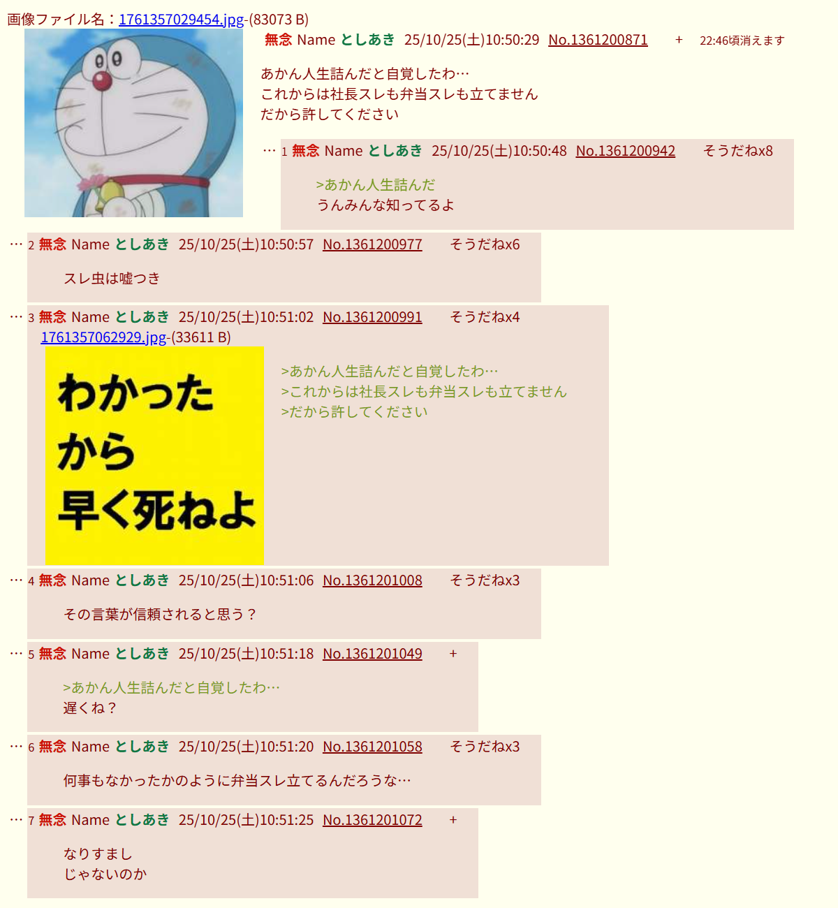 | … | 49無念Nameとしあき26/02/03(火)23:18:28No.1384750833+>>>昼前11時に弁当スレはキツイって! |