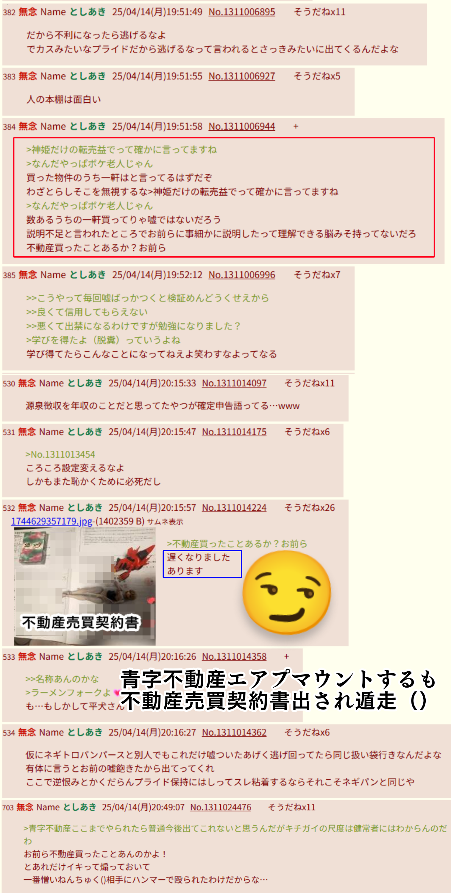 | … | 434無念Nameとしあき26/02/04(水)01:46:41No.1384776265そうだねx4>あえてレスするけど自演もネタ切れも否定はしないのね… |