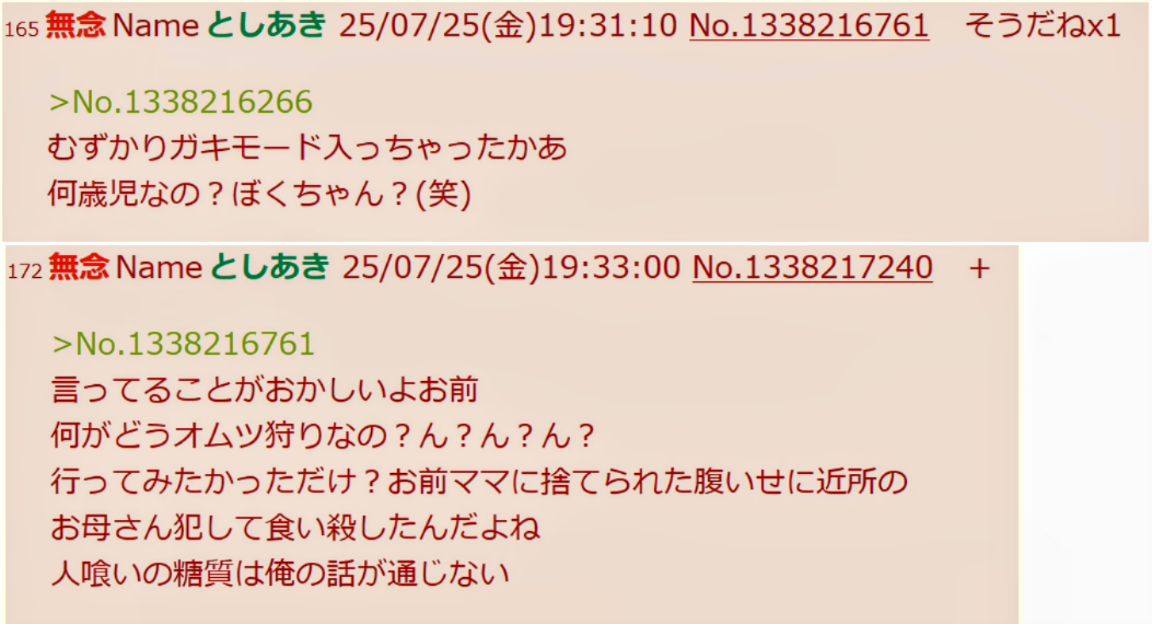 | … | 33無念Nameとしあき26/02/03(火)23:15:35No.1384750110そうだねx3>>糖質とはいえ流石に恵方巻き写真如きにレスバ負けは想定しとらんて… |