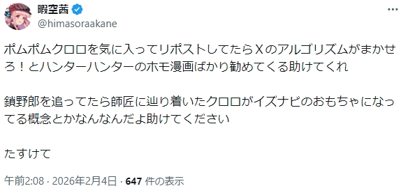 | … | 13🐼Nameとしあき26/02/04(水)02:35:08 IP:220.208.*(pikara.ne.jp)No.1384779221そうだねx2 1770140108608.png-(28289 B) 一方そのころ暇空はホモに悩んでいた |