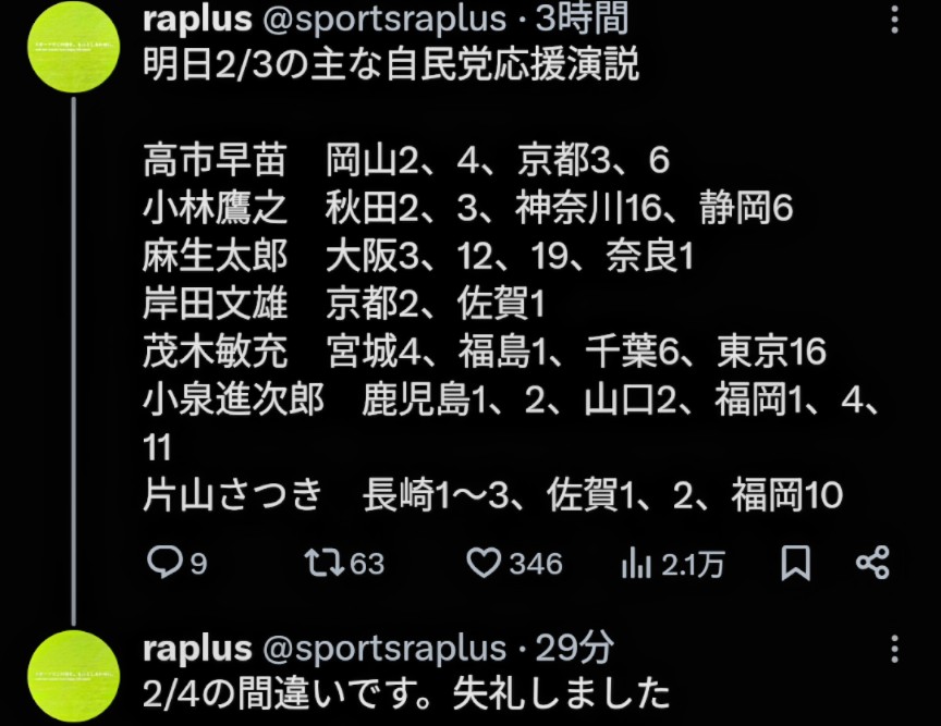 | … | 37無念Nameとしあき26/02/04(水)00:53:24No.1384770518そうだねx5>>自民応援今日の予定 |