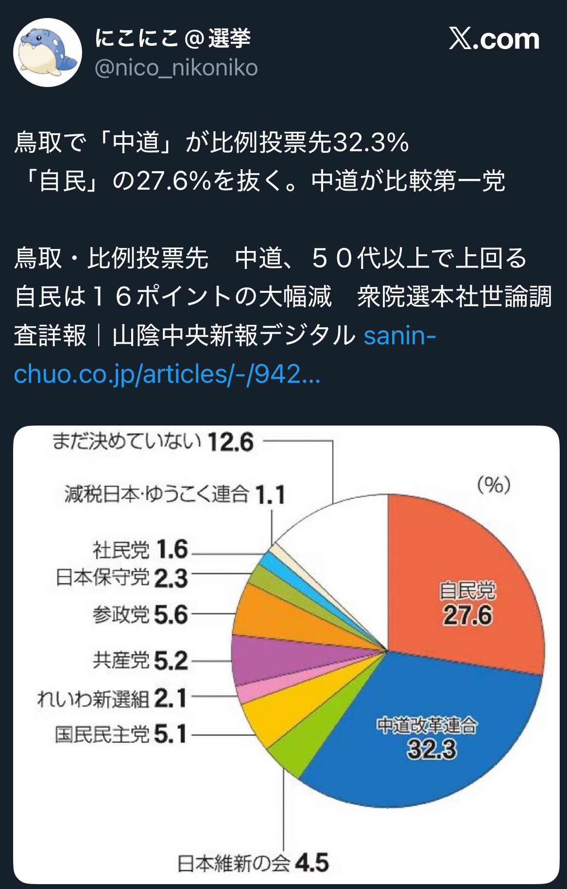 | … | 88無念Nameとしあき26/02/04(水)01:06:34No.1384772259そうだねx1これだけマスコミの援護を受けているのに大苦戦する中道が逆にすごい |