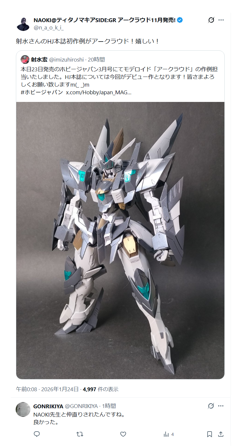 | … | 205無念Nameとしあき26/02/04(水)14:31:52No.1384850036+>作例でミリ単位の造形修正にこだわり見せる割に可動域の干渉とか異様な頭身には無沈着なのは月刊ムーに載せれそうなぐらい謎 |