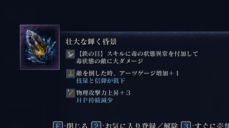 | … | 71無念Nameとしあき26/02/04(水)15:57:31No.1384863518+未満毒腐敗を能動的に発動させる手段として大盾3つでHP上昇が使える…かも |