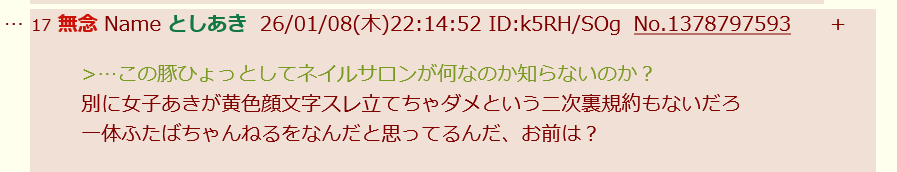 | … | 39無念Nameとしあき26/02/04(水)15:11:37No.1384856064そうだねx7 1770185497450.png-(52007 B) なんかいきなりアレな事言い出したから一応魚拓とスクショ |