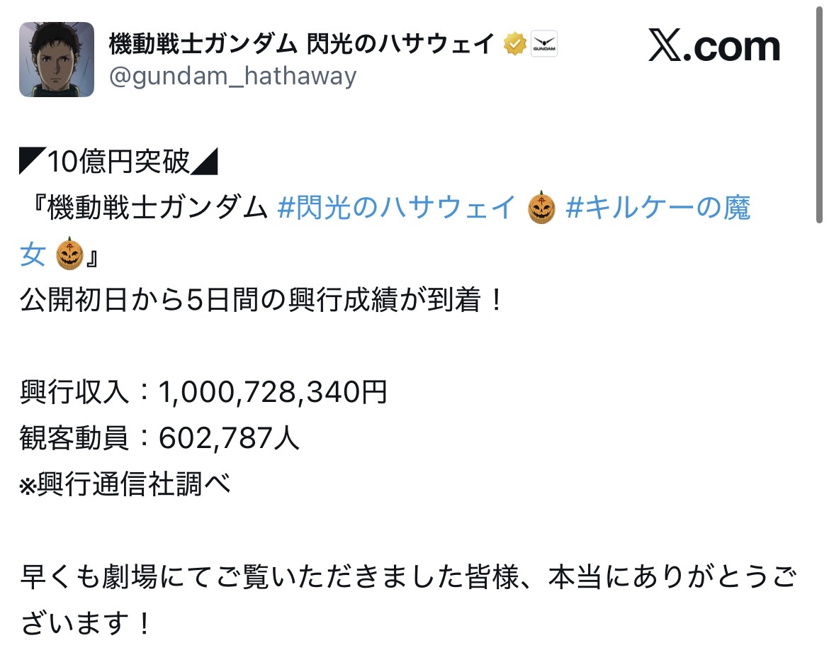 | … | 45無念Nameとしあき26/02/04(水)16:28:56No.1384868362+>ハサウェイ1作目の最終興収は3スカーレットくらいだし |