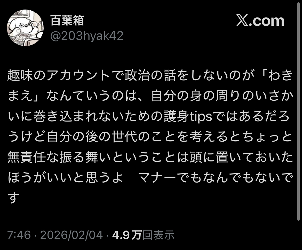 | … | 3無念Nameとしあき26/02/04(水)16:18:31No.1384866671そうだねx2>ただの民間サービスのSNSに人生かけてておもろい |