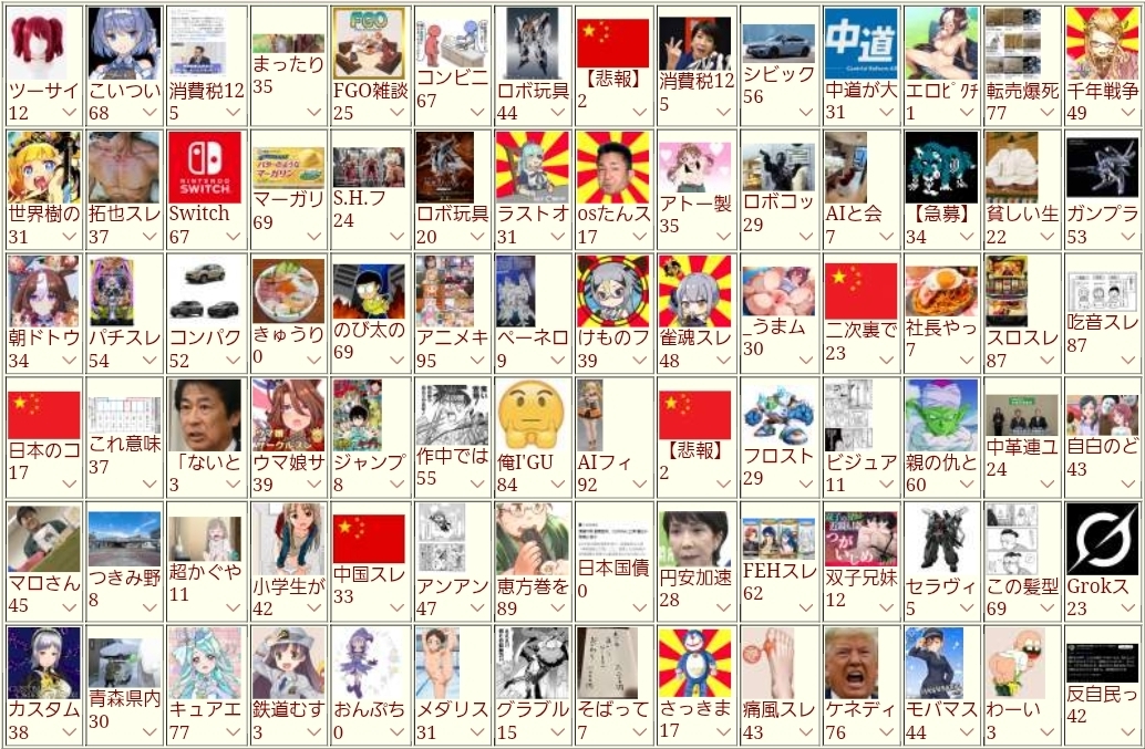 | … | 388無念Nameとしあき26/02/04(水)18:09:10No.1384885485+業者が管理してるニューススレと政治スレだけだな |
