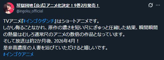 | … | 73無念Nameとしあき26/02/04(水)18:49:16No.1384894299+ちょっと前まで忍者と極道と淫獄団地がアニメ化してさぁ〜とか冗談でよく言ってたけどまさかどっちもアニメ化するとはな… |