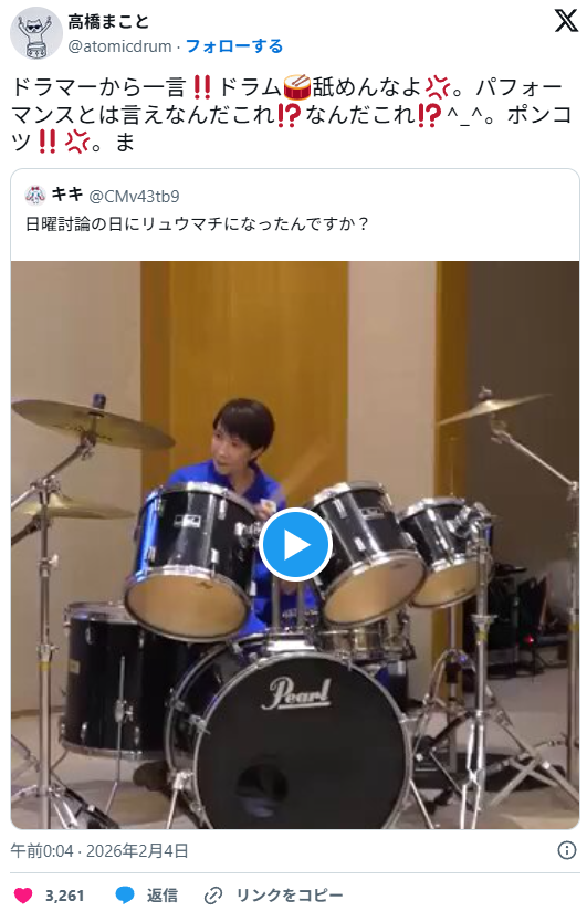 | … | 40無念Nameとしあき26/02/04(水)20:43:22No.1384924175そうだねx22>元BOOWYのドラマー、高市首相の地元を「頭の悪い奈良の民」名指しで “口撃” |