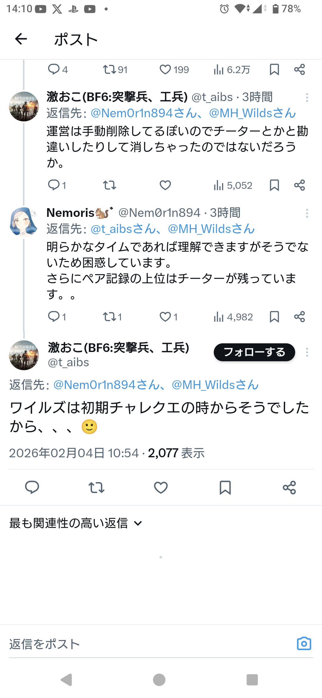 | … | 54無念Nameとしあき26/02/05(木)08:49:48No.1385015169+アンチチートが機能してない環境でランキングを継続させる判断 |