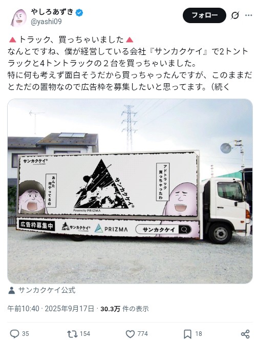 | … | 112無念Nameとしあき26/02/05(木)13:38:48No.1385057335+>スレ画は社長の親友やしろにアドトラック発注したのか? |