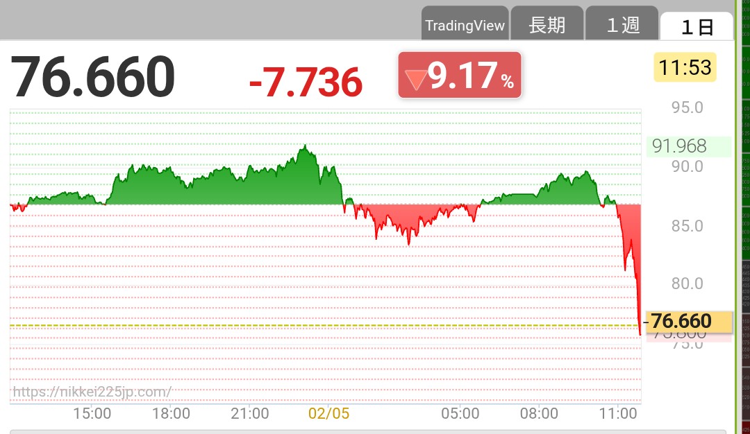 | … | 93無念Nameとしあき26/02/05(木)12:09:50 ID:KCnN8ewYNo.1385039853+月曜の動きに似てたから後場やばいかもと銀利確したので |