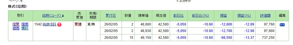 | … | 42無念Nameとしあき26/02/05(木)12:03:59 ID:n.Bda5T6No.1385038820そうだねx2CFDで銀見たら-13%なってるので |