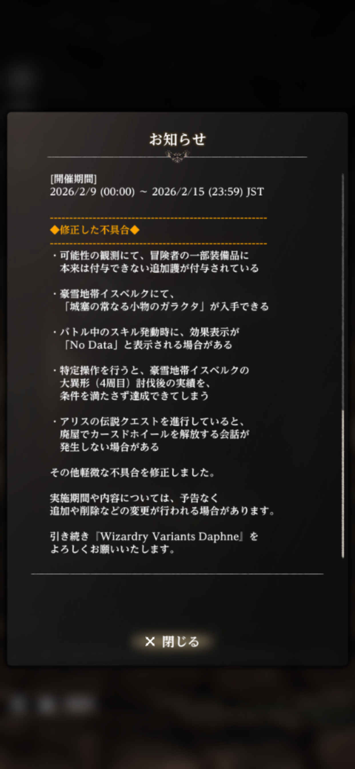 Wizardry Variants Daphne削除された記事が1件あります.見る