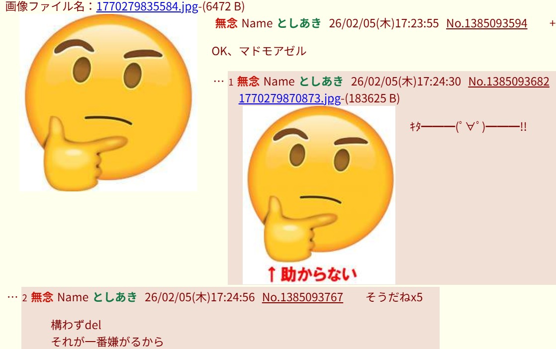 | … | 23無念Nameとしあき26/02/05(木)15:27:13No.1385074788+>No.1385073139 |