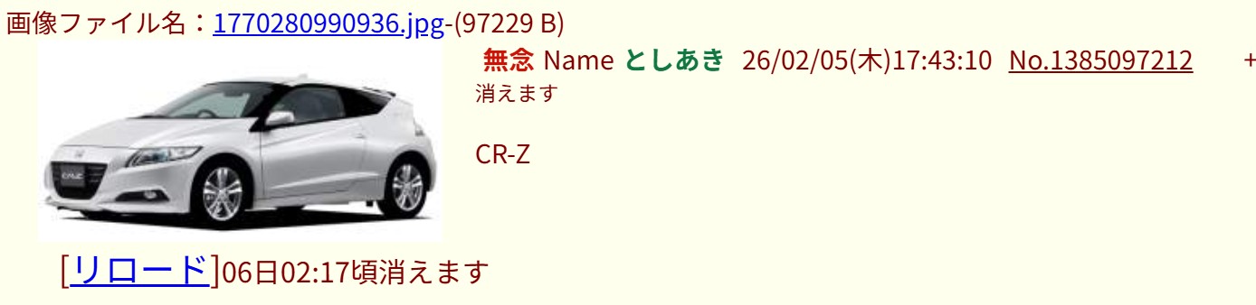 | … | 106無念Nameとしあき26/02/05(木)17:45:57No.1385097676+ 1770281157293.jpg-(65102 B) ホンダ車にこだわりあるのかな |