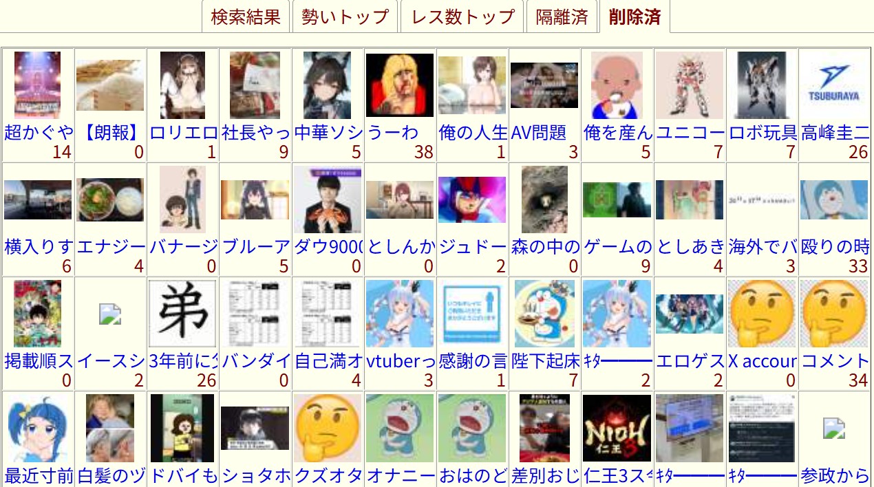 | … | 53無念Nameとしあき26/02/05(木)15:58:56No.1385079984+ドラえもんスレに群がってくる粘着荒らしをアク禁にしたら虹裏はすごく快適になるんだけどなあ |