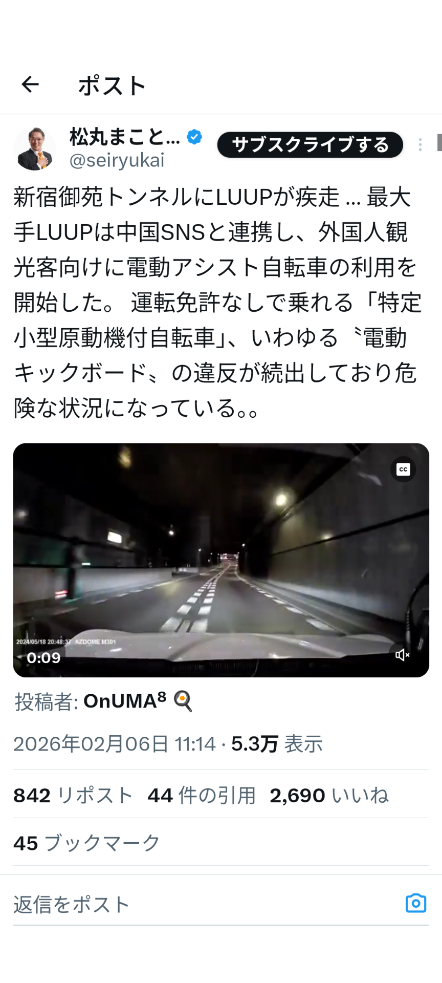 | … | 29無念Nameとしあき26/02/06(金)19:00:12No.1385331890そうだねx1 1770372012912.png-(536845 B) 首都高の地下トンネルに電動キックボード |