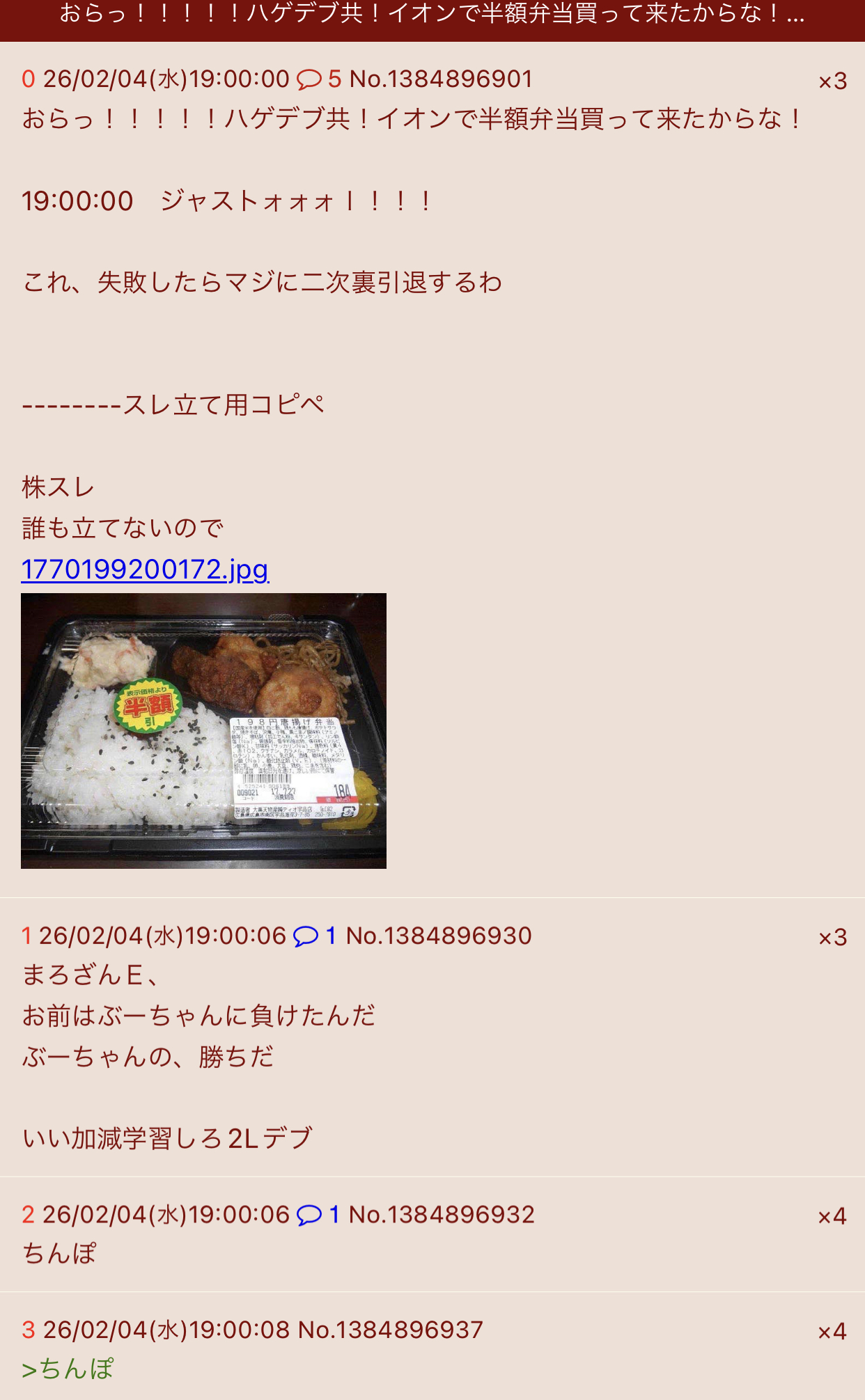 | … | 20無念Nameとしあき26/02/06(金)18:45:52No.1385328795そうだねx1>ほいっ!スレ豚また失敗!! |