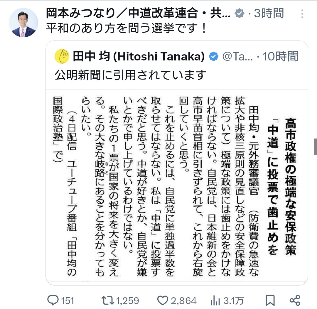 | … | 94無念Nameとしあき26/02/06(金)20:34:33No.1385357081+『中道改革連合 略して中道』を8回言ったんだってな政見放送 |