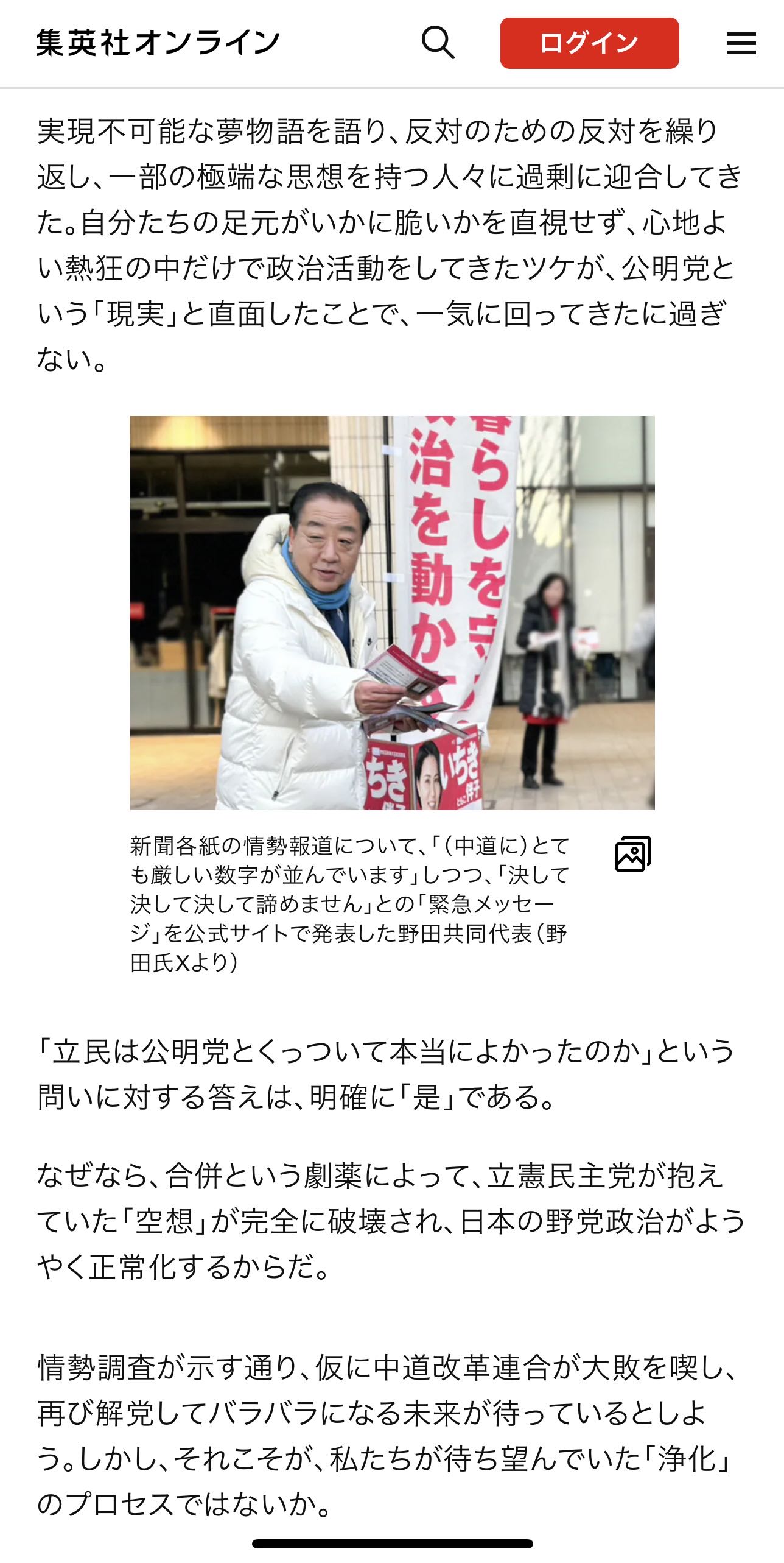 | … | 39無念Nameとしあき26/02/06(金)20:29:10No.1385355448そうだねx2枝野このタイミングで抜けたら助かったのにな |