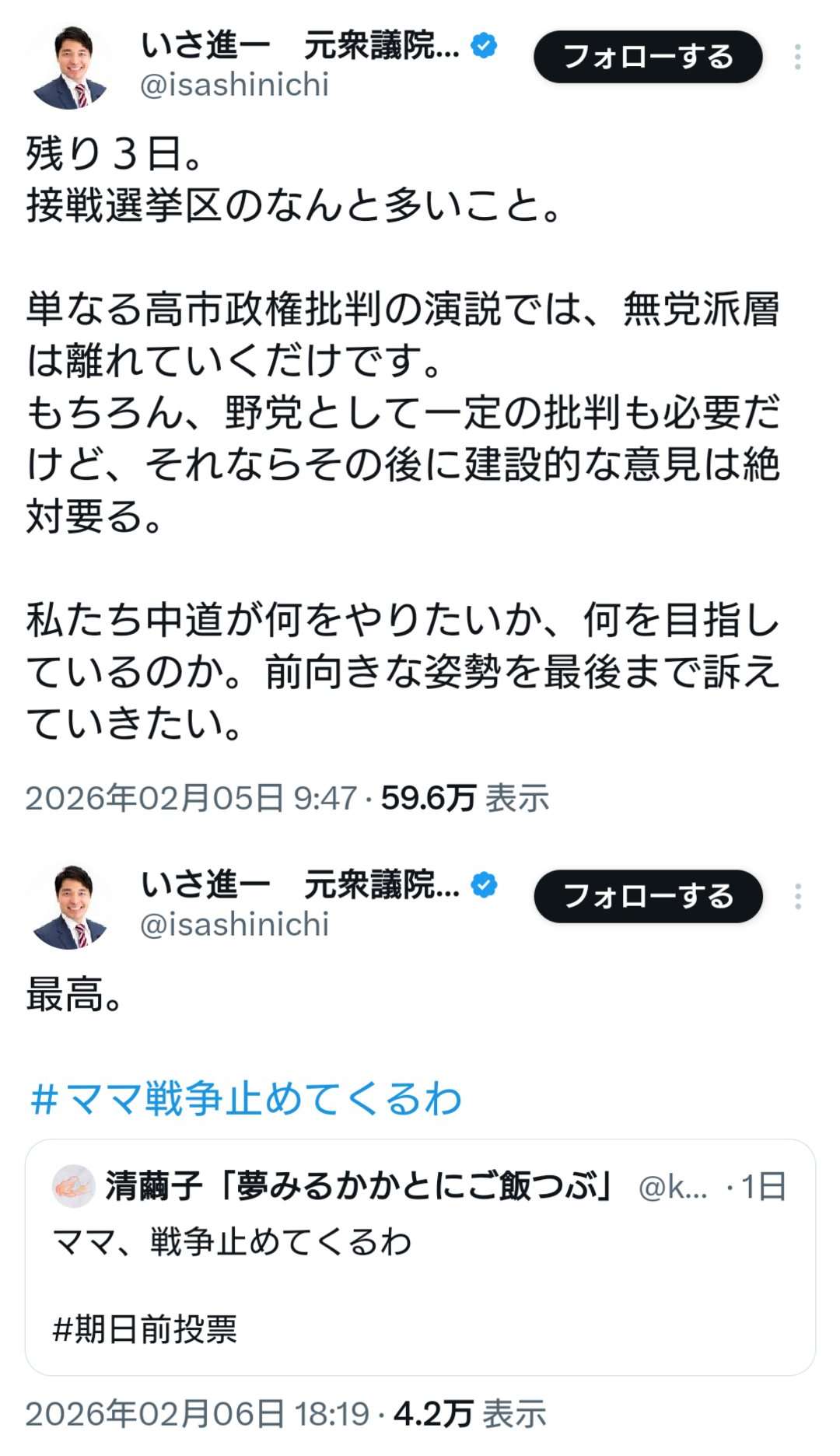 | … | 949無念Nameとしあき26/02/06(金)21:33:05No.1385375295+心配しなくても比例は中革連にしてきたよ |
