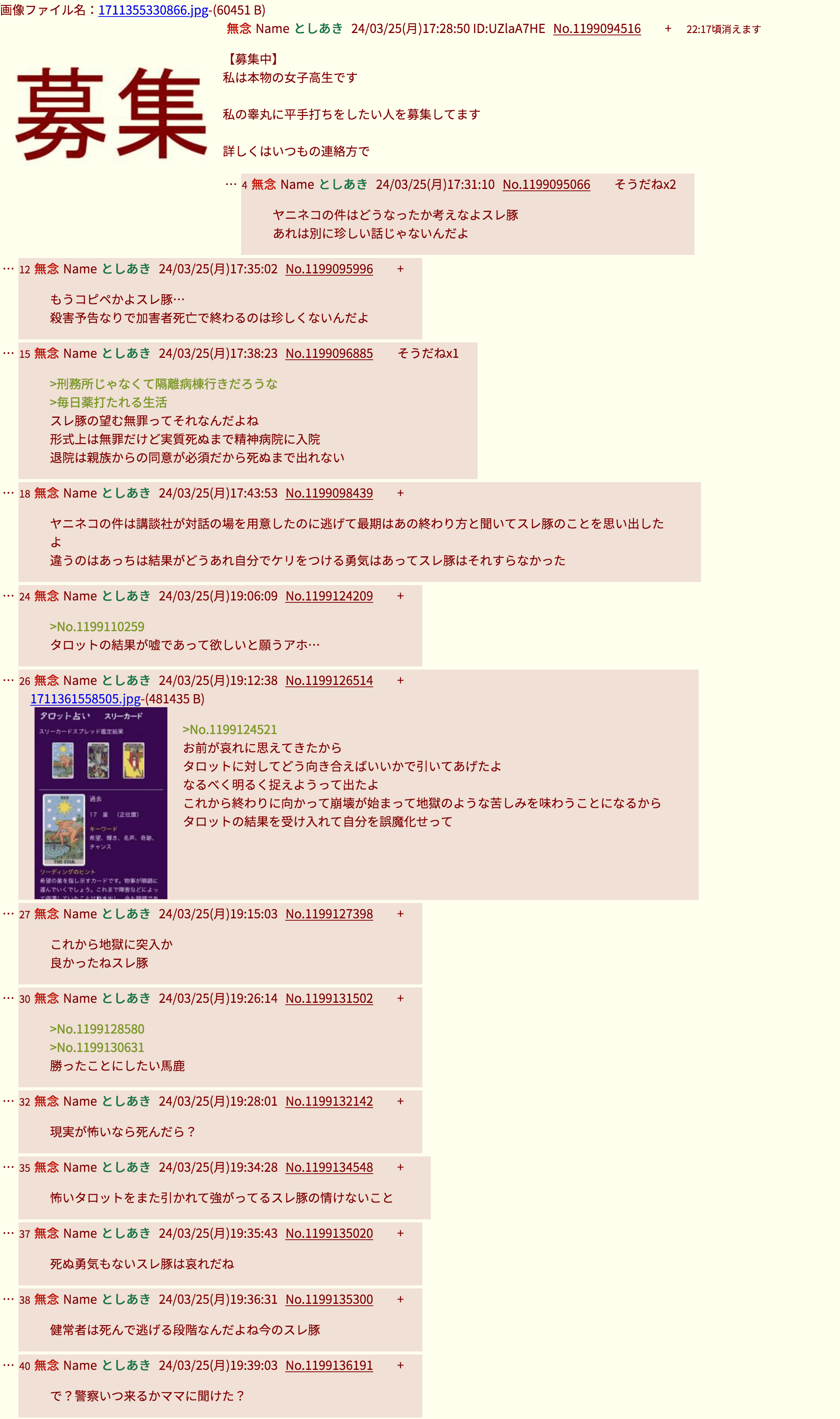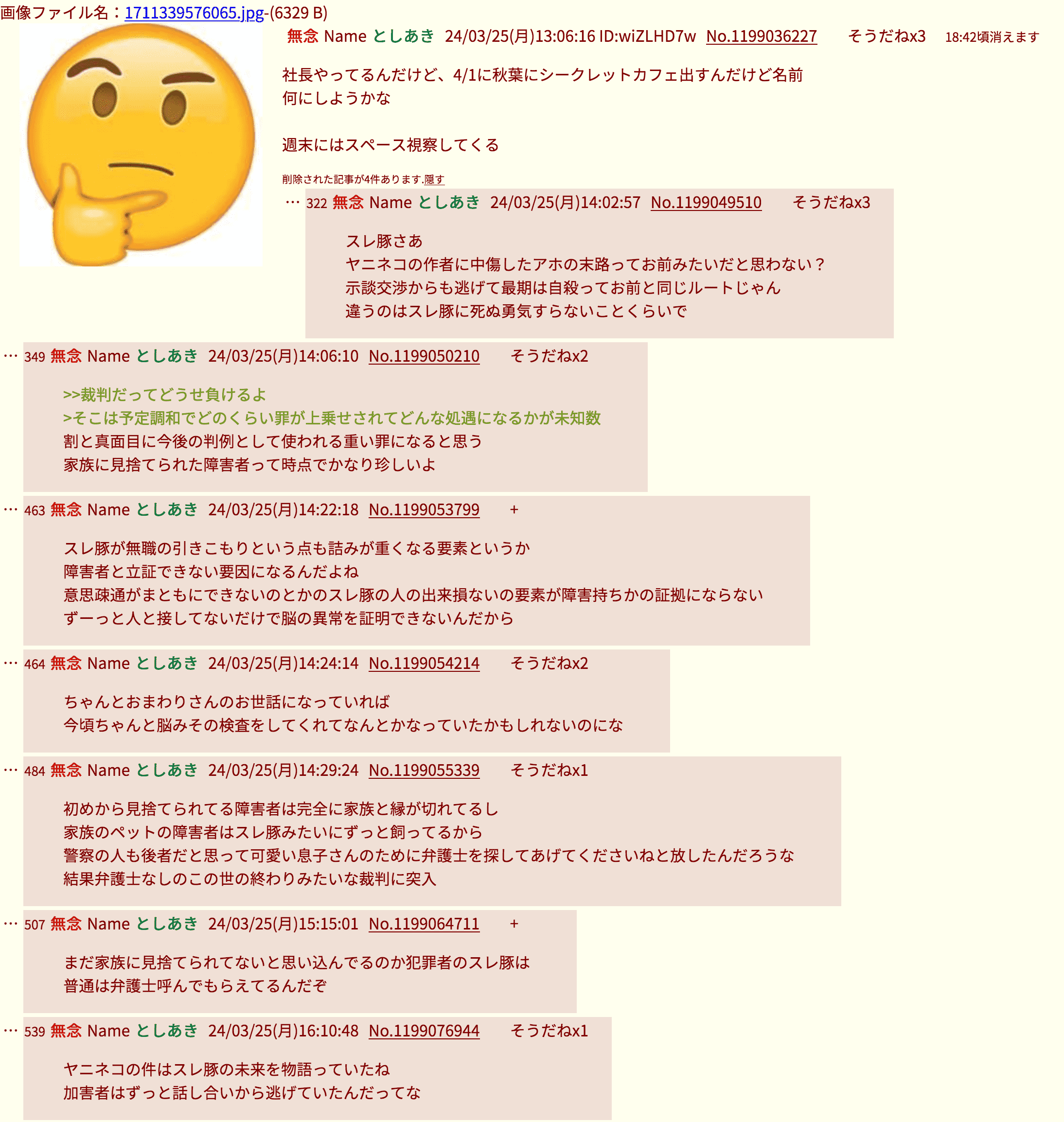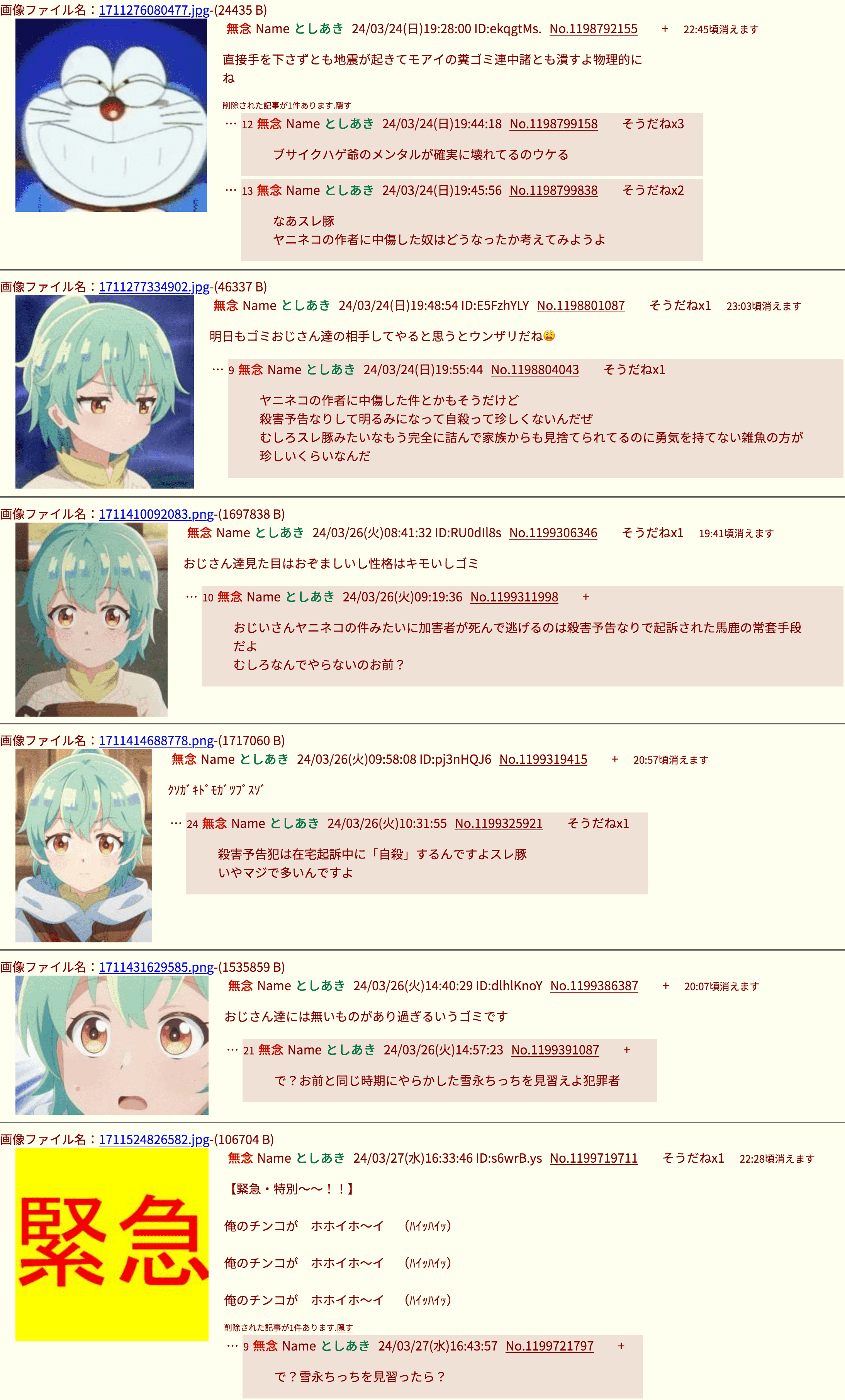 | … | 30無念Nameとしあき26/02/06(金)21:26:25No.1385373143そうだねx3逮捕されるぞ!からの自殺しろ!に草 |