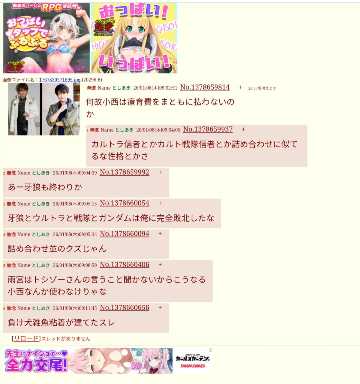 | … | 97無念Nameとしあき26/02/07(土)02:06:08No.1385434152そうだねx5>特撮板とかネット流行語とか好き嫌い.comとか雑魚ジジイの持ってくる不人気のソースは揃いも揃って雑魚だな |